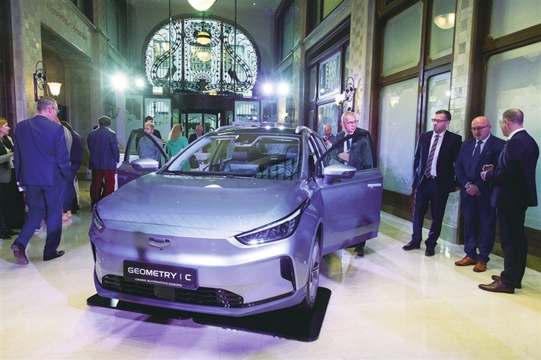 这是11月4日在匈牙利布达佩斯拍摄的吉利几何C型电动汽车。中国吉利汽车集团与匈牙利格兰德汽车中欧公司4日在布达佩斯举行战略合作签约仪式,标志着吉利汽车将首次进入欧盟市场。 新华社发