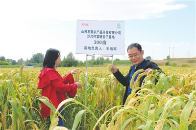 2021年,金土地公司生物科技公司和塞星食品联手闯市场,通过旗舰店销售、快手营销、微信小程序线上线下为产品广开销路。很快,重新包装生产的右玉三大类小杂粮产品,14个品种,在线上线下成为了抢手货,吸收当地农户固定工26人,人均收入48000元,带动小杂粮种植户1300户,户均增收700元,并与农户签订种植和收购合同,合同订单18300亩。“收购价上不封顶,莜麦、豌豆、荞麦的价钱都比市场价高,每公斤0.2至0.5元,还有保底价,保底价不低于当年市场价格。咱农户只有尽心尽力种出好粮食,才能对得起这么好的收购政策。”在“骄梅红”品牌的扶持下,当地农户种植小杂粮的积极性很高,靠着特色和质量,“骄梅红”右玉小杂粮成功走出了一条具有右玉地域特色的产业富民新路径。