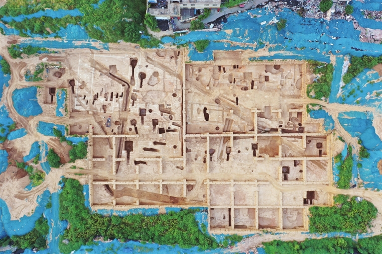 ▲邵家棚遗址发掘区航拍(资料照片)。