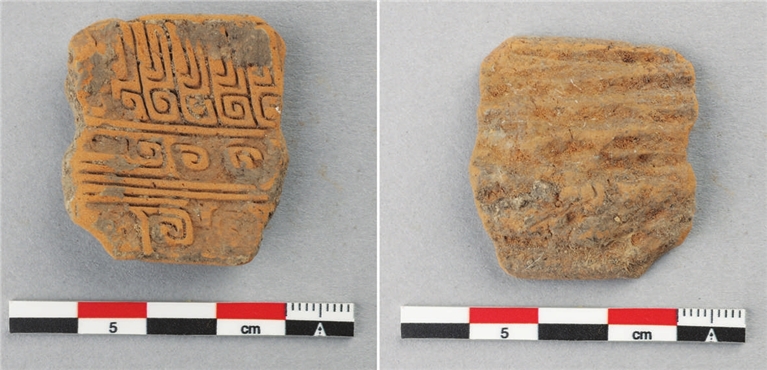 ▲洹北商城铸铜作坊出土花纹范的正、背面(拼版,资料照片)。