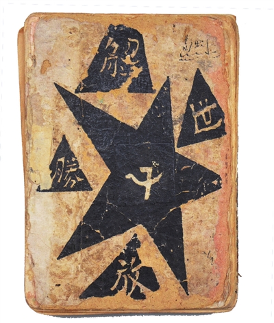 地图封底上印有一个大大的五角星,五角星的中心是由镰刀锤头组成的党徽图案。在五角星的周围有“解放世胜”四个字,寓意在中国共产党的领导下,人民群众解放世界、夺取胜利的决心。