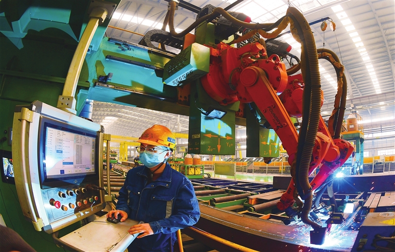 11月13日,山西建投潇河公司钢结构智能制造车间产线上,4台“钢铁侠”机器人正挥舞着橘色的手臂进行焊接作业。作为我省首批国家级装配式现代化建筑产业基地,该公司钢结构智能制造车间承揽着太忻一体化经济区建设诸多加工制作项目,有力保障了“太忻”工程建设跑出“加速度”。米国伟 摄