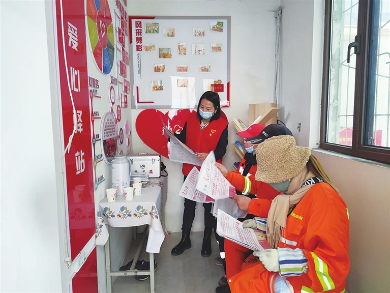 这几天,“双11”之下的快递小哥,还有清扫落叶的环卫工,都比平时更加忙碌。连日来,万柏林区小井峪街道光华街社区邀请辖区的环卫工、快递小哥走进爱心驿站,让他们利用工作间隙在这里短暂休息。驿站里,社区工作人员为户外劳动者们提供了《太原日报》以及热水。与室外的寒冷不同,小小的驿站内尽是温暖。李 涛 郭文娟 摄
