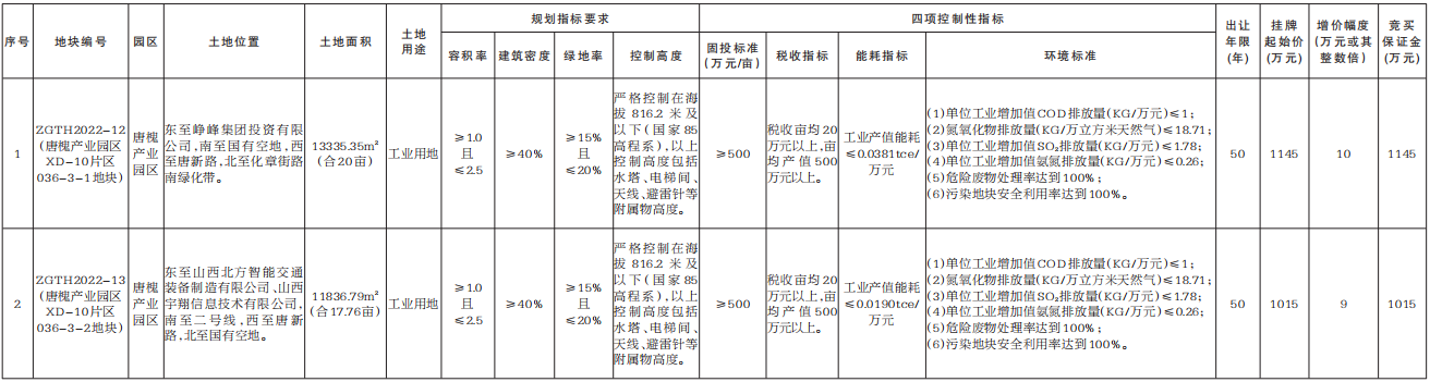 四、本次挂牌出让2宗“标准地”实行双合同一承诺管理,竞得人签订《国有建设用地使用权出让合同》时,须同时签订《“标准地”项目投资建设合同》,并自愿签署《企业投资工业项目“标准地”投资承诺书》。