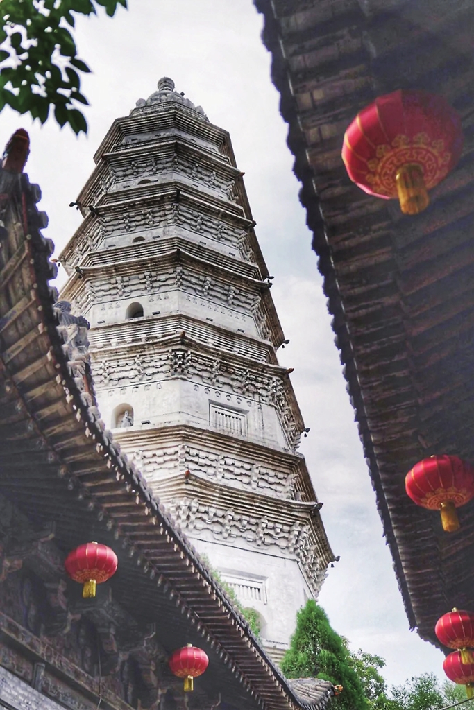 白塔古朴苍劲,巍峨壮观,展现了宋代砖塔的原始风貌。全塔外表白垩涂刷,洁白如玉,格外醒目。相传,建塔时用糯米浆掺白垩粉涂刷,色泽如雪。白塔由青砖砌筑,塔基和塔身平面为八角形,为双重檐楼阁式仿木构空心塔。基座高约1米,用条石砌筑,比例适当,稳固坚实。塔身7层,高43.7米。自下而上各层高度和直径逐渐缩小,收刹明显,外观呈八棱锥体。