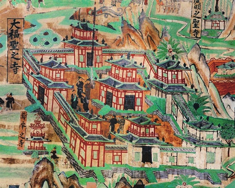 “界画”是中国画的一种,指在绘制比较长的直线时需借助界尺的一种画法,往往是山水画、人物画的一部分,主要用于表现亭台楼阁、屋宇、舟船、车辆等。敦煌著名的《五台山图》,山西永乐宫元代壁画、岩山寺金代壁画等,也都是“界画”。