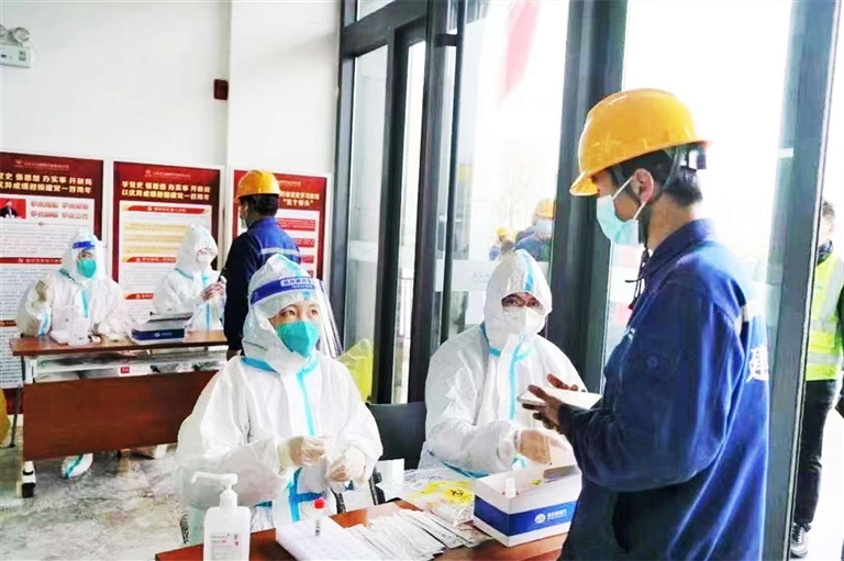 特殊时期,除材料进厂、产品出厂、生活物资采购等方面严格按照疫情防控方案进行闭环管理外,该公司园区内部实行封闭管理,尽可能减少人员流动,降低传播风险。同时,公司积极对接辖区卫生部门,每日对园区内驻厂的近700名职工进行核酸检测,全面筑牢疫情防线,切实保障全体职工身体健康和生命安全。