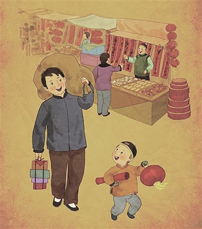 “置买”。即采购年货、办年货的意思。过去有钱人一进腊月就多次进城置买,挑选的都是又便宜又好的年货。没钱的直到腊月二十七八才打闹点钱去购置,这时,商家故意涨价,年货贵了好几倍,采购的穷人苦不堪言。于是,有了“二十七八捉苦鬼”的说法。过去进城都是步行,所以进城并非一件简单的事情。代县城周边的村庄进城需要半天时间,再远点的需要一天时间,再远的地方还需要住亲戚家,但腊月走亲戚又不合适。所以过年置买需要列单子,或者记清楚,否则再进一趟城很麻烦。进城是男主人的事,提上一个大竹篮子,带上小孙子或者小儿子,一来让他见见世面,二来也打个下手。男主人带上孩子进东关,过吊桥,从东门走到西门,再从大南街到了小南街,在校场各个摊位转个遍。每当这时,该买的东西也就差不多了。所购置的东西各家差不多,包括:天地神、灶神爷、香火、黄裱、蜡烛、鞭炮、麻炮、红纸、窗空子、火柴、煤油、红糖、白酒、香烟、糖块、茶叶、花椒、大料、盐、酱油、素油、菠菜、芫荽、鲜姜、蒸锅布、布匹、针线等。①