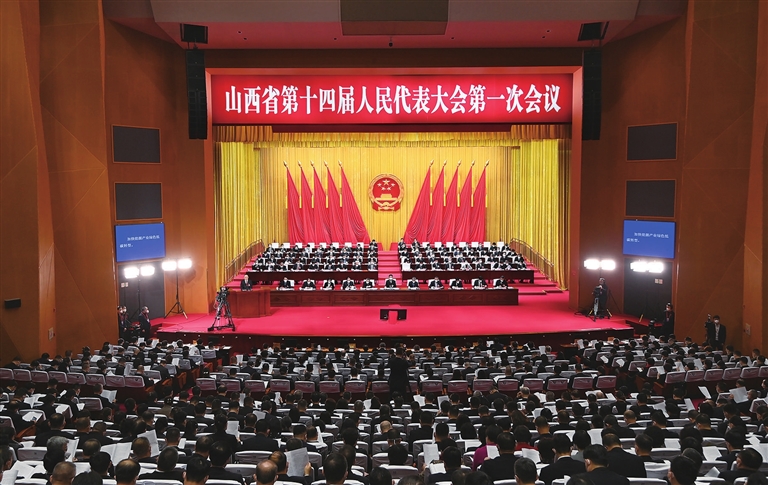 上午9时,蓝佛安宣布:山西省第十四届人民代表大会第一次会议开幕。会场全体起立,奏唱国歌。
