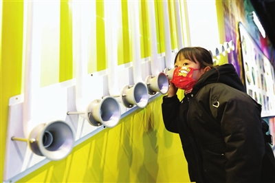 1月17日,一名小朋友在河南省宝丰县科技馆体验“墙壁上的音符”。寒假里,河南省平顶山市宝丰县不少家长带着孩子来到县科技馆,通过体验和参观,感受科技魅力,丰富寒假生活。新华社发 (何五昌 摄)