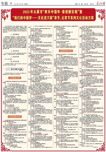 2023年太原市“欢乐中国年·奋进新征程”暨“我们的中国梦——文化进万家”春节、元宵节系列文化活动方案
