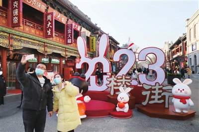 2023年太原古县城春节活动,挖掘生肖兔的吉祥寓意,将传统文化与现代科技相结合,营造充满祥和、温馨、欢乐的新春节日气氛。首先登场的是“年货大集”,这一活动于1月14日至2月6日在城隍庙片区举行,活动设置山西年货网红大集市、100个县农特产展销区,展现1万个山西年货产品,选拔优质县域入驻主题展馆,展示乡村e镇工作成果,让广大游客体验十足年味。