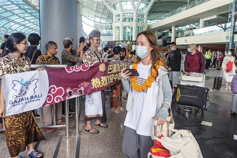 印尼巴厘岛举行仪式欢迎 今年首个中国游客包机抵达