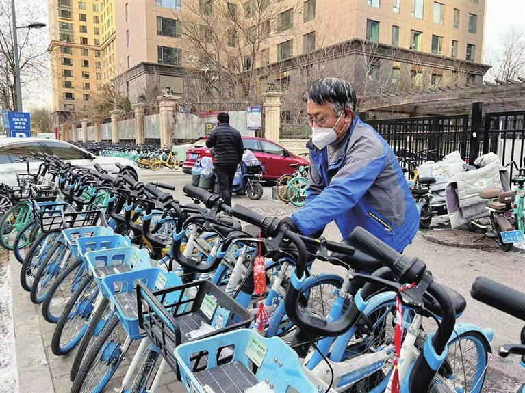 今年52岁的李福民是土生土长的太原人,2019年加入了哈啰单车运维人员的行列,主要负责双塔西街到长风街区域的共享单车秩序停放工作。为了让外地同事能回家过年,李福民第一时间报名参加春节运维值班。