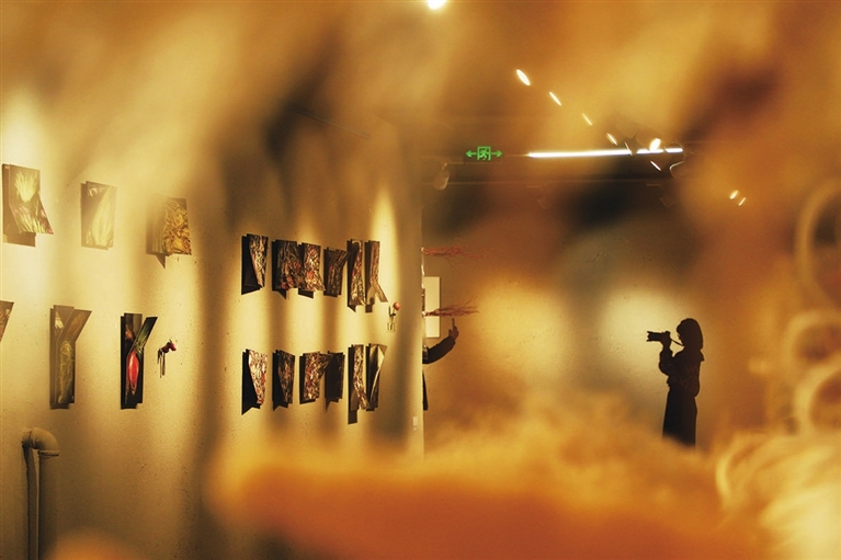 1月28日,在省城南中环街某商场内,市民正在参观“花植互动展”。设计师利用废旧物品进行二次创作,给市民带来全新的艺术体验。张昊宇 摄