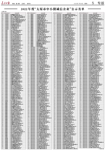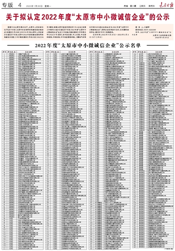 关于拟认定2022年度“太原市中小微诚信企业”的公示