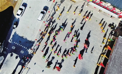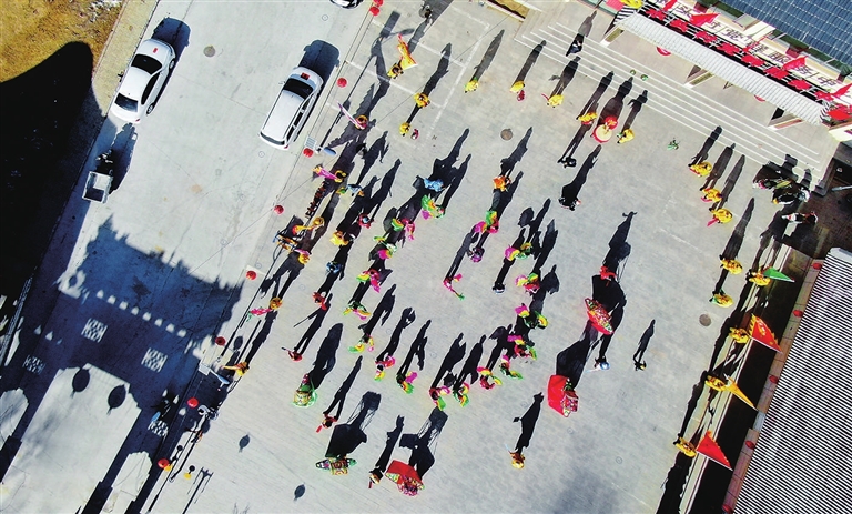 2月2日,阳曲县杨兴乡水头村村民扭起秧歌、划起旱船、踩着高跷,庆祝元宵佳节。 韩双喜 摄