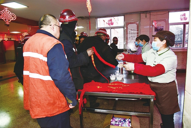 “辛苦啦,吃口元宵暖暖身。下井作业一定要按章操作,高兴上班,平安回家。” 2月4日一大早,山西焦煤西山煤电东曲矿女工家属协管员们,把一份份热腾腾的元宵递到刚升井的矿工手上。