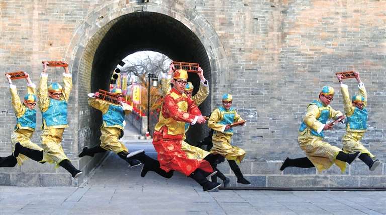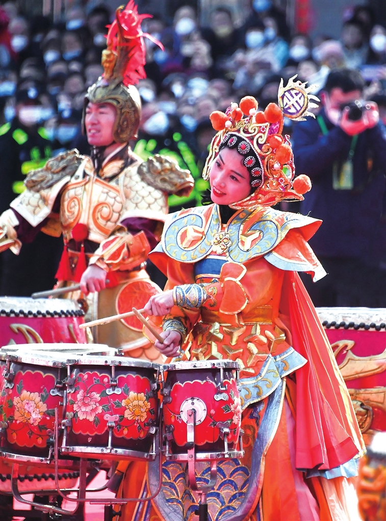午后,热闹开启。社区街道、古城公园,人们歌舞翩翩,欢快迎春。红火的锣鼓,点缀了世间华彩。