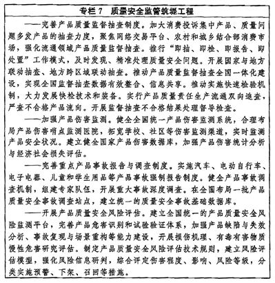 (三十一)狠抓工作落实。各级党委和政府要将质量强国建设列入重要议事日程,纳入国民经济和社会发展规划、专项规划、区域规划。各地区各有关部门要结合实际,将纲要主要任务与国民经济和社会发展规划有效衔接、同步推进,促进产业、财政、金融、科技、贸易、环境、人才等方面政策与质量政策协同,确保各项任务落地见效。