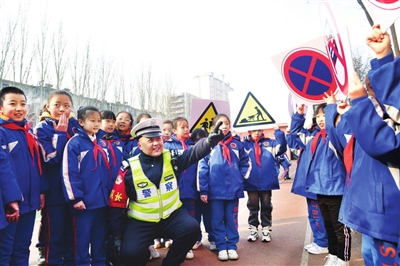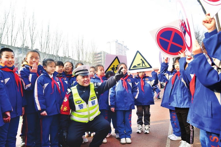 2月8日,双塔北路小学以“交警进校园”,开始了新学期的“第一课”。交警通过讲解、互动等方式,增强学生们的安全意识。米国伟 摄