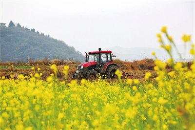 2月7日,贵州省黔南布依族苗族自治州龙里县湾滩河镇翠微村农民驾驶农机在田里翻耕土地。早春时节,各地抢抓农时,开展备种备耕工作。新华社发 (龙 毅 摄)