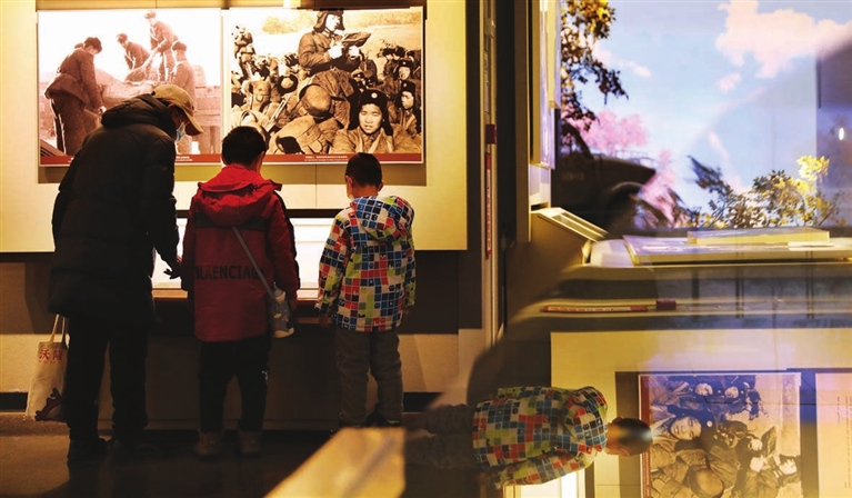 2月10日,小朋友跟随家长在雷锋纪念馆里参观。开学前夕,来辽宁省抚顺雷锋纪念馆参观的小朋友络绎不绝,家长带着孩子来到这里了解雷锋事迹,缅怀雷锋同志,学习雷锋精神。