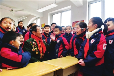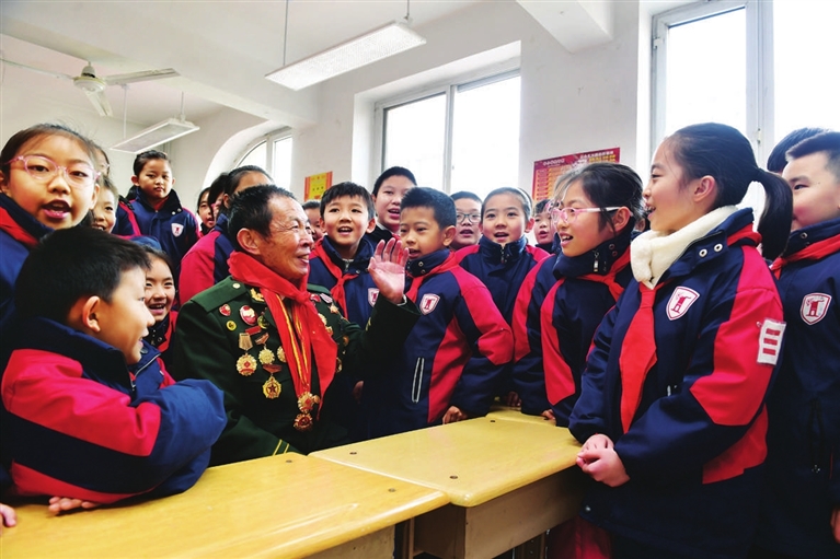 2月17日,桃南小学邀请老兵杨贵山走进校园,为孩子们讲述革命故事,引导广大学生赓续红色血脉,传承红色基因,激发爱国情怀。米国伟 摄