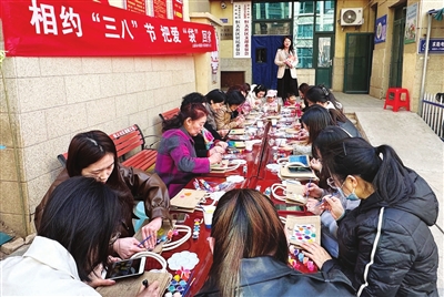 3月7日,恒大社区联合小店区司法局开展了“相约‘三八’节 把爱‘袋’回家”主题绘画活动,丰富了辖区女性的业余文化生活。王韵菲 刘 莹 摄