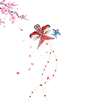 正当我发愣时,女儿已在老人的帮助下,第一次让手里的风筝飞了起来。虽然风筝太小,线也不够长,只能在低空盘旋,但女儿已经非常开心了,她兴奋地现学现卖,急着把刚学来的经验教给我:“放风筝之前,先要观察清楚风向,风筝是逆风而飞的,要站在风口放飞……”女儿高兴地跑远了,老人重新坐回石头上,不时抖一抖手里的线,那风筝仿佛和主人心意相通,一直稳稳地飞在高空。我向老人道谢时,不由多说了一句:“您的风筝真特别,我从来没见过有人卖这种双鱼图案……”他呵呵一笑:“的确不好买。因为这是我自己做的风筝。”