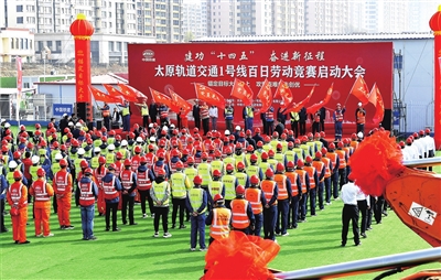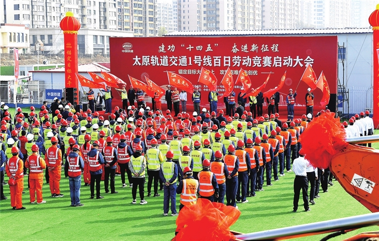 “锚定目标大干快上,攻坚克难争先创优”。 3月21日,26家参建单位齐聚马练营车辆段施工现场,擂响了地铁建设百日劳动竞赛的奋进鼓声,太原地铁1号线建设再添“加速度”。 3月22日,太原轨道交通1号线迎泽桥西站至桃园路站区间双线成功穿越汾河,与之前完成的“零沉降”太原南站11股道铁路线穿越,成为太原地铁建设的“创纪录”工程…… 太原轨道交通1号线一期工程,起于西山矿务局,止于太原武宿机场,是连接迎泽、武宿两个市级中心和太原站、太原南站两个铁路交通枢纽的主要线路。一期工程线路全长28.737千米,设置车站24座,新建21座地下车站,换乘站7座。西端设西山停车场、南端设马练营车辆段。 太原轨道交通1号线工程由中国铁建投资集团、中铁十二局等铁建联合体投资建设,是山西省重点民生工程,也是服务山西省、太原市经济社会发展的重点工程。开工建设以来,施工单位克服疫情、洪涝灾害等不利因素,发挥“逢山凿路、遇水架桥”的铁道兵精神,陆续攻克了省档案馆拆迁、迎泽公园北门平移等难点工程…… 在迎泽东大街、朝阳街、太原武宿机场、省农科院站等建设工地,施工人员挥汗奋战。切割声、打磨声汇成交响;隧道内,机声轰鸣,施工正忙;浇筑工地,绑扎钢筋一丝不苟;设备旁,一碗面条,满目春光…… 建设者的汗水没有白淌。截至目前,“1号线”新建21座车站中的17座车站主体结构封顶;全线已完成11个盾构区间双线贯通、2个单线贯通。 辛勤劳作,日夜奔忙,为的是提升城市品质;加班加点,忘我付出,激越起“太原地铁”的铿锵力量。 统筹 宿晓健摄影 贾 鹏 米国伟 文字 平 原 美编 王金国