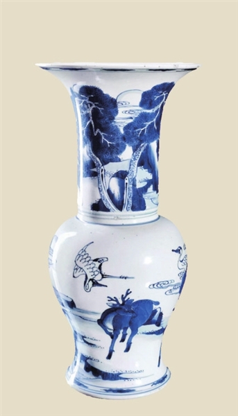 “鹿鹤同春”是我国传统吉祥图案之一,表达了天下皆春、万物欣欣向荣的意思。太原博物馆藏有一件“鹿鹤同春”青花瓷瓶。