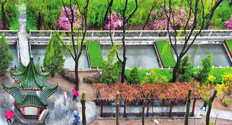 4月3日,一场春雨悄然而至,湿润的空气让人们倍感舒适。市气象台提醒广大市民,受冷空气影响,未来几日,我市气温持续走低,要注意防寒保暖。韩双喜 摄