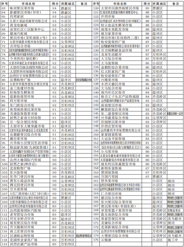 与2022年检查时相比,市场内总体情况有了较为明显的提高,均分较2022年的82.5分提升至90.8分,但还存在一些共性问题:一是宣传氛围方面,部分专业市场内的宣传氛围依然不足,部分装饰城、汽配市场内公益广告还是很少,未达到创城要求。二是市场环境方面,部分市场内存在垃圾清理、清运不及时;机动车、非机动车乱停;飞线充电;公共卫生间存在问题。三是周边环境方面,部分市场周边生活小区生活垃圾清理、清运不及时;楼道内有乱堆放;公益宣传有脏污破损;有飞线充电现象。大部分市场都位于背街小巷,普遍存在非机动车、机动车乱停,还有部分电动车驾乘人员不佩戴安全头盔。