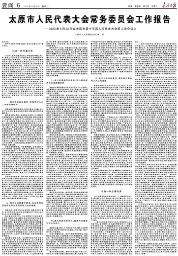 太原市人民代表大会常务委员会工作报告