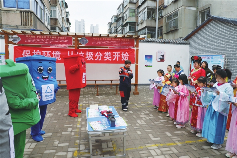 活动现场,一线环卫工人为居民详细讲解垃圾分类知识。随后的垃圾分类比赛中,各民族家长带着孩子们拿起写有各类垃圾名称的卡片,投入相应的垃圾桶。