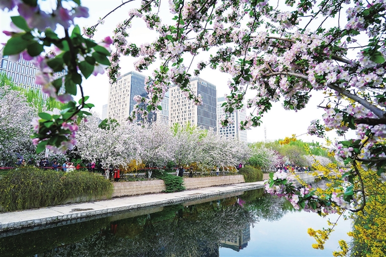 4月5日,人们在北京元大都城垣遗址公园赏花。清明假期,人们纷纷来到户外踏青休闲,感受春天的气息。新华社记者 陈晔华 摄