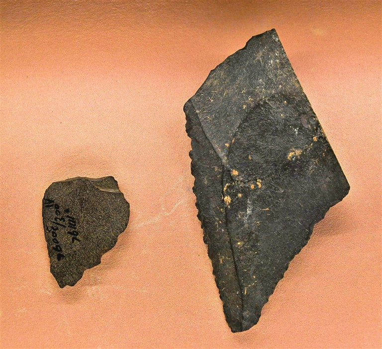 “文明摇篮”展厅,襄汾县丁村出土的距今约10万年的锯齿刃器、翼城枣园村出土的仰韶文化早期的石磨棒、万荣县荆村出土的庙底沟二期文化时期的陶斝等,展现了旧石器和新石器时代的山西风采,对农业起源进行了诠释和解读。