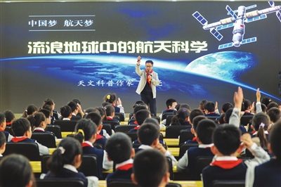 四月十二日,太原新华书店与希望出版社联合举办的“讲科幻故事,播科学种子”主题系列讲座走进双西小学。国内知名科幻作家潘亮向学生们讲解科学知识,激发孩子们的创新热情和创造活力。