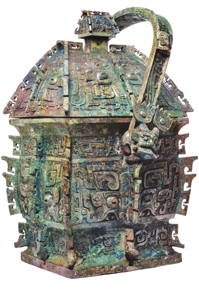 义尊和义方彝的另一个特点是器身上的扉棱非常夸张。商代青铜器上的扉棱一般都是微微凸出器物表面一定高度,主要是为了遮盖、联结铸造青铜器时范与范之间的缝痕,将青铜器纹饰均匀分割开,形成视觉上的协调,从而形成一种独特的装饰艺术。反观义尊、义方彝的扉棱,凸出器表很高,有一种刻意为之的粗犷倾向。有学者认为,这是西周初期的王朝统治者有意通过此种形式体现出本朝与商王朝的不同,也间接折射出周王朝作为胜利者内心的喜悦和张扬。这也成为判断西周早期器物的一个旁证。