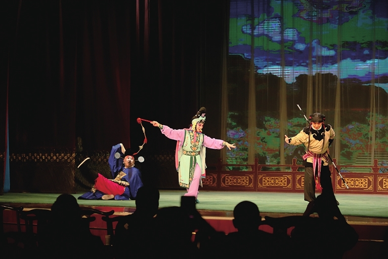 4月15日晚,2023年“国粹鉴赏”《三打陶三春》在山西省京剧院梅兰芳剧场上演,吸引广大戏迷前来观看。