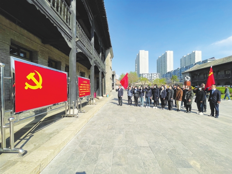 近日,建设银行山西省分行巡察办党支部、纪委办党支部及驻太原迎泽支行党支部赴太原国民师范旧址联合举行支部党建共建活动。大家重温入党誓词,接受红色教育和廉政教育,坚守廉洁底线。王志明 摄