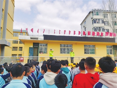活动中,交警给孩子们发放了中小学生交通安全宣传书及宣传页,便于孩子们能更加直观地了解道路交通安全法律法规。民警向孩子们讲解了如何安全过马路、安全骑自行车、安全乘车等基本常识,提醒学生在上学、放学路上要遵守交通法规,摒弃交通陋习,增强自我保护意识。同时,告知学生监督家长骑电动车、摩托车时戴安全头盔,驾乘车辆时系好安全带,不酒后驾驶、不闯红灯、不逆行,自觉做到“守法规、知礼让”。