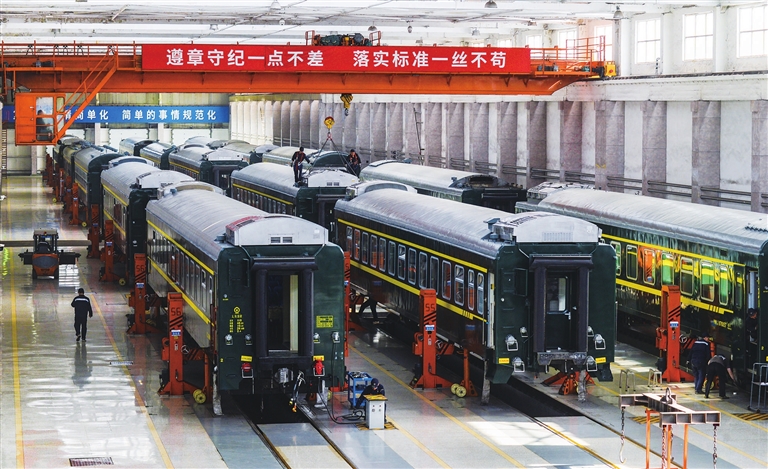 4月23日,太原车辆段检修车间的工作人员正在对车体逐项分类检查,做到春检整修工作精准细致,确保客车行车安全平稳。牛利敏 宋卫东 摄