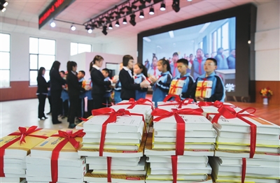 4月23日是第28个“世界读书日”,小店区终身教育与学习型社会建设促进委员会办公室、区图书馆向北格中心校的学生们赠送了《钢铁是怎样炼成的》《骆驼祥子》等400册经典图书及各种文具,鼓励他们养成爱读书、读好书、善读书的阅读习惯。王韵菲 摄