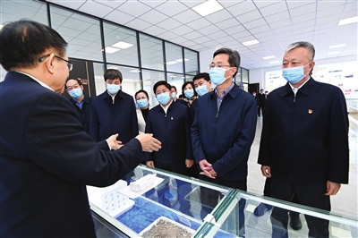 朔州市因煤而立,是典型的资源型地区。蓝佛安带着对省委大兴调查研究关于资源型经济转型发展课题的深入思考,入园区、进企业、看项目,与市县、企业负责人深入交流。在山阴经济技术开发区和朔州经济开发区,蓝佛安听取园区规划建设、产业链培育情况汇报,了解宝武太钢绿电铬基合金、中煤平朔煤基烯烃新材料等重点项目谋划推进情况。在山西超牌煅烧高岭土公司,企业负责人介绍了通过自主创新将煤矸石“变废为宝”的成效,并高兴地说,得益于当地资源、能源、区位、政策等比较优势,企业这几年发展迅速,已启动实施了三期四期项目。蓝佛安要求有关部门持续创优营商环境,搭建公共服务平台,帮助企业在技术创新上探索实践,做好固废综合利用这篇既有经济效益、更有生态和社会效益的大文章。在山西三元炭素公司,蓝佛安对企业数十年如一日深耕炭素行业给予肯定,勉励企业坚定发展方向,加强技术攻关,延伸产业链条,在煤炭清洁高效利用上不断取得新突破。古城奶粉上世纪八九十年代畅销全省,承载着几代人的回忆。蓝佛安来到古城乳业集团,听取企业发展历程和下一步思路介绍,参观奶制品生产线,详细了解新品开发、生产销售和联农带农等情况,勉励企业发挥地处农牧交错带的优势,对标行业一流,树立质量第一理念,加快完善现代企业制度,不断提高经营能力和管理水平,努力打造具有全国竞争力的奶业品牌。