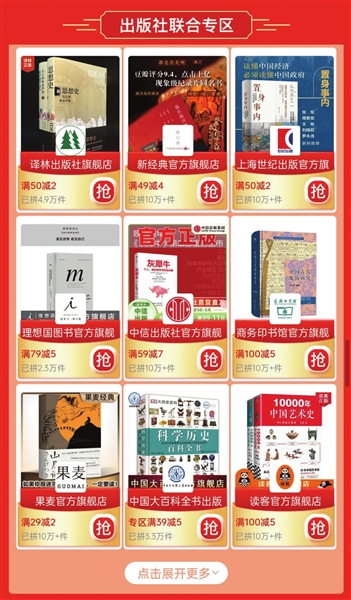 这背后是拼多多最近两年在图书领域的积累。从2021年开始,每年两季的多多读书月已经举办至第五季。在过去的四季活动里,拼多多积累了上百家出版社合作伙伴,如人民文学出版社、商务印书馆、中信出版社、果麦、理想国……不仅你能想到的全都有,拼多多还与出版界共同发起“平价正版公益联盟”,影响上亿人次消费者。