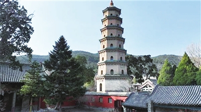 舍利生生塔位于浮屠院中央,始建于隋开皇年间,宋代重修,现存古塔为清乾隆十六年(1751)重建之作。塔高38米,分八角七级,每层均绕以琉璃勾栏。