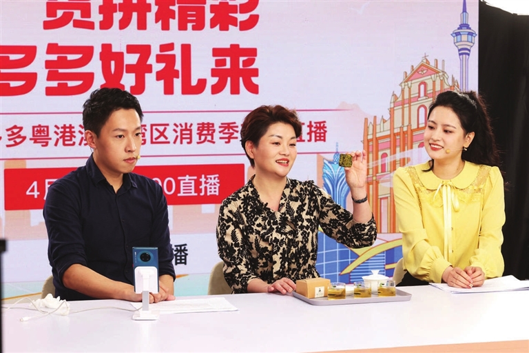 4月26日,时值由商务部、中央广播电视总台、广东省人民政府、香港特别行政区政府、澳门特别行政区政府主办的粤港澳大湾区消费季暨第三届直播电商节启动首日,拼多多撬动百亿补贴、万人团等资源举办专场带货直播活动。主播们向广大网友推荐“广州造”佳品、名特产、老字号等数十种品质“广货”。福建省龙岩漳平市商务局局长林娜在直播中惊喜现身,向全国消费者推介来自龙岩的水仙茶、百香果脯等好物。