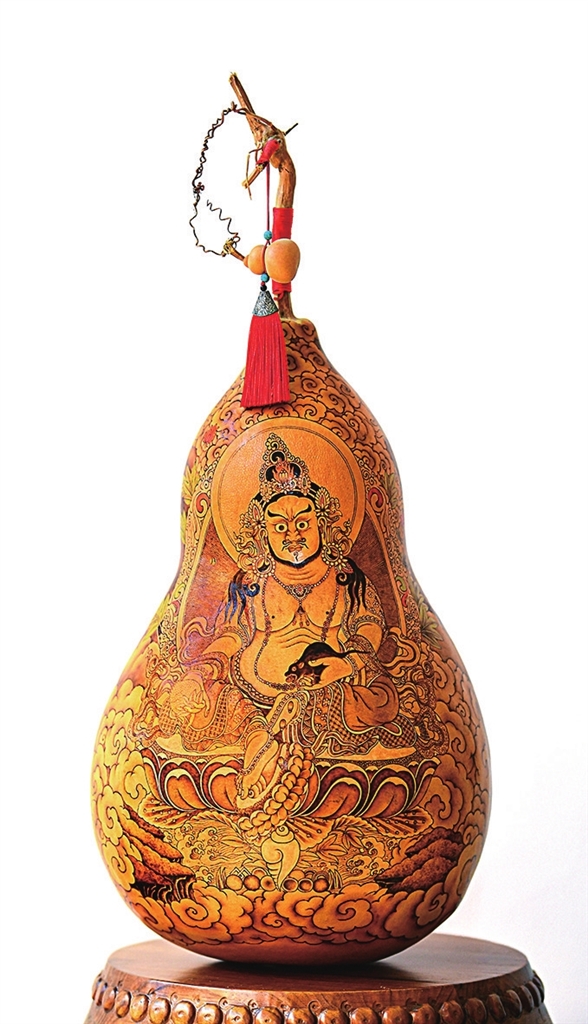 一组组带着拙朴味韵的彩烙葫芦画,为我们呈现了中国传统文化的奇光;一件件造型独特的葫芦,为我们撑架起远古传说的异彩。